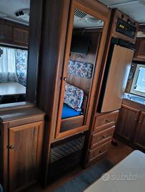 4/5 posti letto con letto matrimoniale basculante anteriore, con ampia cucina e tavolo centrale con bagno e doccia.