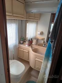 il camper è provvisto di tendalino, 3 pannelli solari, doppio serbatoio acqua , luce esterna, condizionatore blizzard (da rivedere ) , portabici, boiler truma, doppia batteria servizio agm. bagno nautico.