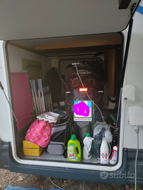 In cellula: mansarda in Alcantara, luci a led bianco/ Blue con relativa presa USB incorporata ( due su ogni letto) per ricarica. 250watt di pannelli con parallelatore e regolatore Victron Bluetooth, batteria servizi 120 Agm nuova, batteria motore nuova, webasto 5 kW che scalda tutti gli ambienti compreso il garage, acqua calda 50°\70°, bagno con doccia separata, stufa 4 fuochi con forno e scalda vivande, frigo grande con congelatore separato trivalente con resistenza 220 nuova e perfettamente funzionante in automatico, turbovent, oblò panoramico e oblò 40x40 sopra la doccia, serbatoio acqua 100 LT e serbatoio acque grigie 100lt , 2 cassette estraibili C200 inverter 1500 w, televisione 12 v e parabola Sat con ricevitore e scheda. Tendalino esterno con luci full led. Enorme Garage con accesso in ambo i lati e dall' interno della cellula. Presente relativa pedana per caricare moto o scooter . Il Camper è perfettamente funzionante. PREZZO TRATTABILE DOPO VISIONE.