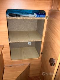 Ideale per riporre oggetti di ogni genere in uno spazio altrimenti inutilizzato e senza dimenticare che utilizza come sportello l'anta interna originale del camper normalmente utilizzata per mettere in comunicazione corridoio e garage, quindi oltre ad essere utile rende il camper più sicuro perchè viene a mancare un passaggio importante che usano i ladri per lavorare indisturbati.
