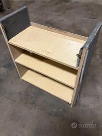 Vendo come da titolo ad un prezzo veramente da regalo, mobile completo tipo inserto/scarpiera realizzato in compensato rivestito con moquette grigia e sono disponibili compreso nel prezzo anche profili angolari in alluminio dorato copri angoli composto e assemblato artigianalmente su misura per garage Camper mansardato e non del 2004 - 2007 Adria Adriatik, vedi anche foto della vista interna al camper.