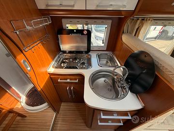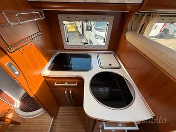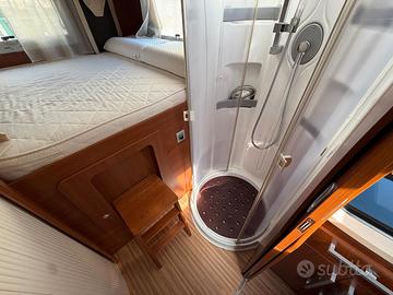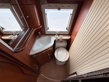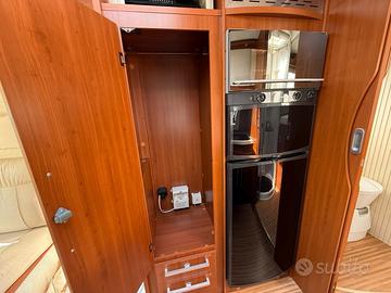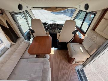 Anno 04/2011 - 4 posti omologati - posti letto 4 Patente B - Km 68.112 - Lunghezza 6,998 MECCANICA Fiat Ducato 2300cc Multijet 130cv - EURO 4 - Clima cabina - Cerchi in lega con pneumatici da 16" - Doppio airbag - ABS - ASR - Impianto con radio CD - Sedili cabina regolabili, con piastre girevoli, braccioli e in tinta - Impianto CB - Inserti effetto radica cruscotto - Oscuranti plissettati per parabrezza e laterali - Ruota di scorta completa ACCESSORI CELLULA Veranda esterna - Pannello solare - Antifurto perimetrale e volumetrico - Impianto con antenna Tv digitale terrestre - Attacco esterno acqua - Porta bici 3 posti - Frigorifero grande a commutazione automatica Forno a gas - Maxi oblò Heki zona giorno - Resistenza antigelo su valvola di scarico acque di recupero - Zanzariera scorrevole porta cellula - Alluminio mandorlato su piano garage - Stacca batterie servizi - Luce esterna - Porta cellula con finestra - Piastra porta TV + Tv zona giorno - Oblò su letto basculante - Luci a Led interne - Staffa di fissaggio ruota moto all'interno del garage - Cappa aspirante cucina - Garage con parete attrezzata - Luci notturne cellula abitativa PREZZO CON PERMUTA € 45.9000,00