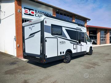 · Marca: Mobilvetta · Modello: Kea 64 Kompact · Tipologia: semintegrale compatto con gemelli · Meccanica: Fiat Ducato · Potenza: 140cv · Dimensioni cm: 699 x 215 x 285 · Peso kg: 3500 · Posti letto: 3 · Posti omologati: 4 · Trazione: anteriore