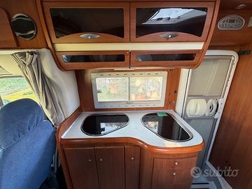 Bellissimo semintegrale super accessoriato in perfette condizioni su meccanica Fiat Ducato 2.300 da 130 cavalli. Lungo 7,16 metri e' disposto internamente da un ampia zona living formata da una dinette classica face to face, cucina spaziosissima efrigo grande con freezer separato, bagno con una grande doccia separata e letto trasversale posteriore con ampio garage sottostante. Doppia aria condizionata sia in cabina che in cellula e tantissimi altri accessori presenti.Veicolo pronta consegna in ottime condizioni. Vero affare!