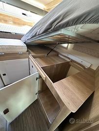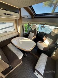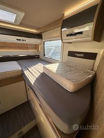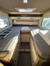 semintegrale di fascia alta con letti gemelli posteriore, ampia zona living e letto basculante elettrico matrimoniale. grande garage posteriore. bagno con doccia separata e cucina spaziosa. veicolo molto accessoriato praticamente nuovo. vero affare