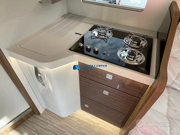 Serbatoi acque: chiare 145 lt (20 lt in viaggio) / grigie 135 lt