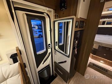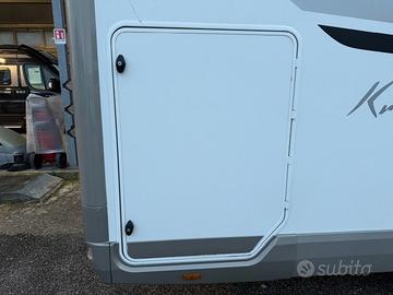 Mobilvetta Krosser 90, immatricolato marzo 2020, su meccanica Fiat Ducato 2.300 da 140 cavalli, camper di alto livello lungo 7,45 metri, con soli 27.000 chilometri, tenuto in ottime condizioni. La disposizione interna è tra le più richieste, con una zona living estremamente ampia caratterizzata da dinette face to face, poltrone girevoli e tavolo a libretto pieghevole, il tutto reso ancora più luminoso dalla presenza del maxi oblò Skyview. Il comfort di viaggio e di sosta è garantito anche dal letto basculante matrimoniale elettrico che scende sopra la cabina di guida. La cucina è generosa negli spazi e molto funzionale, dotata di cestelli estraibili scorrevoli, piano cottura a tre fuochi e frigorifero da 156 litri, ideale anche per utilizzi prolungati. La zona servizi offre un grande bagno con, di fronte, una ampia doccia separata. In coda troviamo la raffinata configurazione con letto nautico, affiancato da armadi laterali su entrambi i lati e impreziosito da un maxi oblò panoramico. Completa l'allestimento il doppio pavimento con gavone passante sottopavimento e un ampio garage posteriore, perfetto per il trasporto di moto, attrezzature e bagagli. Veicolo molto curato, spazioso e confortevole, ideale per chi cerca qualità, abitabilità e soluzioni tecniche di livello superiore.