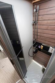 MECCANICA FIAT DUCATO 2.2 MJ LUNGHEZZA: 745 CM; LARGHEZZA: 235 CM POSTI LETTO 4 POSTI OMOLOGATI 4 EURO 6 CHASSIS Clima manuale cabina; Traction+, Hill Descent; Airbag guidatore e passeggero; Cruise control; TPMS; Cerchi in lega 16''; Fari fendinebbia; Skid Plate, Cornice fari neri; Paraurti bianco; Freno a mano elettrico; Volante e pomello cambio in pelle; Cruscotto finiture cromo; Predisposizione Radio DAB con comandi al volante. ESTERNI Porta Premium XL a 2 punti con finestra e zanzariera; Skydome apribile, con zanzariera e oscurante; Chiusura centralizzata; Maniglie gavoni ad incasso; Bandella apribile con gavone. INTERNI Illuminazione 100% LED; Botola a pavimento; Oscurante plissettato cabina. TECNOLOGIA TekniBox; I-NetXSystem; Sensore porta aperta; Sistema gestione doppia batteria; Vaso espansione; Carica batteria 22 Ah. ACCESSORI MONTATI SUL VEICOLO ESPOSTO NON COMPRESI NEL PREZZO: 180 CV con cambio automatico. PACK VISIO: Radio 2Din Apple Car Play/Android Auto, Retrocamera doppia funzione PACK EXTRA TECH Full digital cluster, Climatizzatore automatico, Caricatore wireless, Fari FULL LED A PARTIRE DA: € 92.220,00