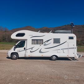 magnifico mansardato 7 posti letto su meccanica ducato 2.3 mtj 130 hp con appena 50000 km. Sempre tagliandato e manutenzionato per preservare le ottime condizioni in cui versa. alcuni accessori fondamentali sono: sospensioni ad aria Alko doppio serbatoio acqua riscaldamento canalizzato webasto doppia cassetta wc portamoto omologato per 150 kg condizionatore a pompa di calore dometic airfresh doppio sensore triogas doccetta esterna inverter onda pura 1500 w illuminazione interna a led telecamera posteriore pannello solare il camper non necessita di alcun intervento ed è pronto a partire