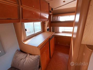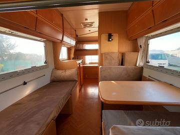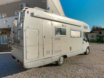 Motorizzazione: Fiat Ducato 2.8 TD 115cv - km 64000Disposizione giorno: Doppia Dinette Disposizione notte: Letto matrimoniale mansarda, letto matrimoniale ricavabile dalla dinette, letti a castello posteriori.Accessori: Veranda, antenna, pannello solare, telecamera, sospensioni aria.Posti letto 7 - posti omologati 7Lunghezza: 6,80mt