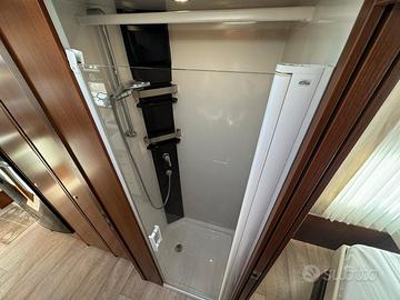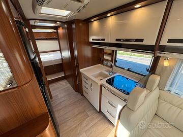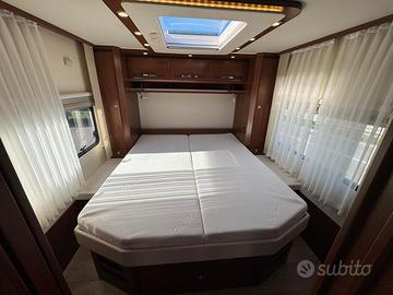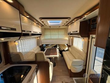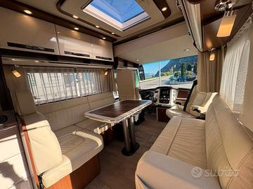 Cambio automatico, livrea esterna in carbonio, sospensioni ad ariaanteriori e posteriori, cerchi in lega, serbatoio gasolio 170 lt, sedilianteriori ad aria, finestrini elettrici, volante cabina in pelle e removibile,bagno optional luxus, tendalino esterno elettrico, oblò panoramico posteiore,tendaine privacy, piano di lavoro in simil corean, letto basculante elettrico,tavolo allungabile, rivestimento interni simil pelle, pack elettrico,telecamera doppio occhio posteriore, kit multimediale, impianto tv anteriore eposteriore, interni in pelle, condizionatore da tetto, doccetta esterna,cassaforte, attacco gas esterno, antenna digitale terrestre.