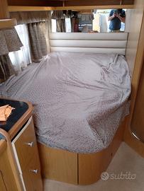 Letto in coda pronto con materasso ancora imballato, un letto componibile dalla dinette e un altro letto basculante sopra la cabina con materasso pari al nuovo.
