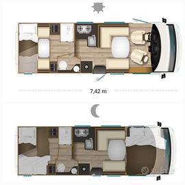 motorhome Itineo del gruppo RAPIDO ha tutto quello che serve e che si desidera avere, full optional SB740 SPIRIT EDITION Motore ducato 2.3 160cv Euro 6D Anno 2021 Km 29.500 Lunghezza 7,43 Oltre 10.000 euro di optional Tenuto maniacalmente Praticamente nuovo Rimessato al coperto Certificazione infiltrazioni Cronologia tagliandi Revisione fatta valida fino al 2027 Cruise control ESC/Hill Holder TRACTION+ Airbag guidatore e passeggero Aria condizionata Start & Stop System CHIUSURA CENTRALIZZATA SU TUTTE LA PORTE Volante e cambio in pelle Gomme top di gamma michelin agilis 4 stagioni 2021 su cerchi in lega da 16' zanzariera scorrevole su porta ingresso GRADINO ELETTRICO TV e Antenna 5 posti letto 5 posti omologati in viaggio tutti FRONTE MARCIA N.2 batterie servizi con NDS MANAGER N.2 pannelli solari Inverter TRUMA CP PLUS per controllo riscaldamento e areazione Sedili anteriori girevoli Oscuranti interni plissettati Piedini di stazionamento posteriori SOSPENSIONI AD ARIA regolabile elettricamente dal posto guida, Radio dual din con retrocamera, Bagno con doccia separata passante Clima cellula TELAIR SILENT 5900 + Clima motore Safe doors FIAMMA su tutte le porte N.5 Oblò per il massimo dell illuminazione e areazione Compreso in bagno e in doccia Cameretta con letti a castello 80x220 e dinette contrapposta face-to-face che puo diventare un letto matrimoniale Garage a volume variabile riscaldato, Letto basculante con Oblò che quando scende lascia libera la dinette Soggiorno più grande della categoria che può ospitare 8 persone + 3 persone nella dinetta posteriore garage che può ospitare 3 MTB Rete protezione su tutti i letti Tendalino fiamma F45 4,5mt Luci FULL-LED Attacco doccetta esterna con acqua calda e fredda, anke in garage Oscuranti e zanzariere SEITZ perfetti Portabici 4 binari Varie prese 12v/220v/usb Grazie alle sue rifiniture è alla qualità costruttiva RAPIDO è Perfetto sia in estate che in inverno. MAI FUMATO E MAI ANIMALI 75.000,00
