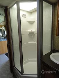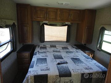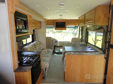 Motorhome Americano usato pochissimo. Guida con patentate C, Motore Ford V10 6800 benzina con nuovo impianto gpl. Marce automatiche, Lunghezza mt 10, larghezza 2,55. 1 slide laterale, Piedini idraulici autolivellanti, generatore, aria condizionata canalizzata, riscaldamento canalizzato, doppia tv a led, ampio letto matrimoniale in coda, per un totale di 6 posti letto. Ampio frigorifero con congelatore separato. Fornello a gas a 3 fuochi e forno a gas. Wc Nautico, contenitore acque da 200 lt. Ampia autonomia.