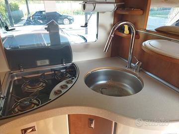 Motorhome Carthago chic c-line 4.9 immatricolato 45ql (declassabile 35ql) in perfette condizioni, sempre rimessato al coperto su fiat Ducato 3000cc 180cv. telaio Alko. Tagliandato , frizione nuova cambiata a 90000km, gomme appena cambiate Michelin crossclimate camping (percorsi 3000km). Interni perfetti . Omologato 5 persone , Tendalino 5mt,retrocamemera, cb, sospensioni ad aria alko originali, doppio impianto di riscaldamento indipendente con due canalizzazioni separate webasto 3900 e Truma combi 6000E (funzionamento anche elettrico) televisore e parabola, inverter onda pura 1000w collegato alle prese originali del camper, Duocomfort truma e valvola secumotion, rilevatore gas, allarme con sensori perimetrali, doppia cassetta thetfort in dotazione, doppio serbatoio acque chiare 190lt serbatoio interni nel doppiofondo (impossibile il congelamento anche dello scarico). Tappezzeria in velluto e inserti stoffa nuova sempre usate coperture. Doppiofondo stivabile, ampio garage portamoto o bici e gavoni laterali riscaldati . Doppia batteria al gel x100ah , pannello solare 100ah. Oblò panoramico maxi Heiki e altri 3 oblo mini heiki a tetto con oscuranti plissettati, oscurante anteriore a serranda, finestre con apertura relolabile non a scatti. Ideale per 5 persone 3 letti posteriori longitudinale e matrimoniale basculante anteriore. Chiusura centralizzata e porta entrata con doppia chiusura. Luci a led . Bagno e doccia separati con porta intermedia per separazione zona notte. Cassetta wc thetford (2 in dotazione) con sistema SOG integrato antiodori. Frigo 150lt trivalente Dometic con cella congelatore separata a doppia porta. Dinette con tavolo regolabile e sedili girevoli anteriori , doppie tende e zanzariera alle finestre. interni pareti e soffitto ricoperti in microfibra. Alta coibentazione. Fornello a gas 3 fuochi lavello con copertura che diventa mensola. Autoradio 2din con casse anche in cellula, Navigatore integrato con mappe camper. Piedini posteriori manuali