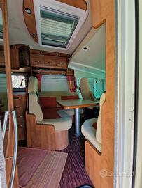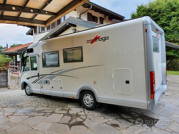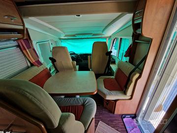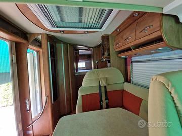 tendalino, parabolica + decoder + TV + autoradio, antifurto, impianto SOG, retrocamera, motore 3,0 l., posti 5, ampio garage rivestito con rampa e fissaggio per scooter, climatizzatore cabina, lungh. 6,85 m, pannelli isolanti invernali, tubo di scarico.
