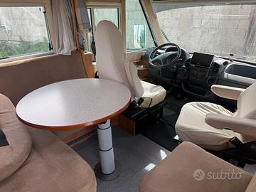 Marca: Carthago Tipologia: Motorhome Condizione: Usato Anno di immatricolazione: 2005 Meccanica: Fiat Ducato Km: 123850 Cilindrata:2.8 Cavalli: 145 Cambio: Manuale Trazione: Anteriore Posti: Letto 5 / omologati 4 Misure: 7150 m lungh, 2350 m largh Alimentazione: Diesel Patente: B Descrizione e accessori: Letto trasversale in coda, letto basculante e letto aggiuntivo ricavabile dalla dinette; Bagno con doccia separata; Cucina 3 fuochi con cappa e due lavelli; Frigo grande Dometic con freezer separato; Riscaldamento e Boiler “Truma Combi” (gas); Sistema ALDE riscaldamento e acqua calda; Aria condizionata in cabina e in cellula; Pannello fotovoltaico 100W; 2 serbatoi acqua chiara da 100 litri cadauno; Tv con antenna satellitare; Autoradio e kit monitor con retrocamera; Sensori di parcheggio posteriori; Sospensioni ad aria Al-ko; Piedini di stazionamento manuali; Doccia esterna; Chiusura centralizzata; Stacca batteria; Gradino elettrico; Tendalino Omnistore; Gavone grande; Telaio Al-ko. Importante: Il camper viene consegnato con controllo infiltrazioni e igienizzazione