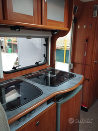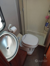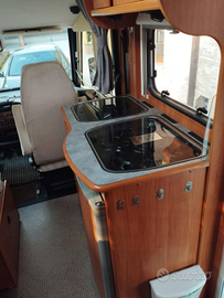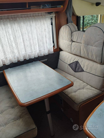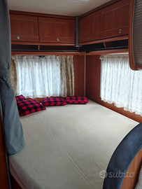 Letto matrimoniale anteriore basculante e letto alla francese in coda con sotto un gavone capiente, bagno con doccia separata wc a cassetta estraibile, cucina con frigo trivalente automatico, dinette trasformabile in matrimoniale comodo, sedile passeggero girevole, inverter.
