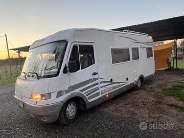 Anno 2000, Motorizzazione Fiat ducato 2.8 tdi km 145000 originali, secondo proprietario.. Dinette posteriore a ferro di cavallo trasformabile in letto matrimoniale, Dinette anteriore trasformabile in matrimoniale o piazza e mezzo, letto basculante azionamento elettrico, nessuna infiltrazione. Bagno con doccia separata e porta. Riscaldamento trumatic C, Frigo grande con freezer trivalente. Oblò grandi. Telecamera posteriore.Zanzariere ed oscuranti perfetti. Sedili anteriori girevoli. Specchietti elettrici, aria condizionata in cabina con canalizzazione in cellula. Antifurto antenna satellitare sensori di parcheggio. Alzacristalli elettrici antifurto.. fotovoltaico. Tagliando effettuato due mesi fa più ulteriori lavori come da fattura allegata.. batteria motore nuova yuasa, alternatore+ cinghie e relativi cuscinetti. E' stato effettuato un lavaggio specializzato per la cura della sua struttura che gli ha donato lucidità e anche un ulteriore protezione agli agenti atmosferici. In più sono state montate 4 gomme nuove. Non vendo per necessità economica. provincia di Pisa 3337033595 € 26000 leggermente trattabile ripeto astenersi speculatori o affaristi.