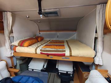 Ducato 3.0 anno 2008.km 82000, cerchi in lega, sospensioni nuove e maggiorate anteriori, cuscinetti pasticche e ganasce freno a mano nuovi, telaio alko doppio asse, block shaft, monitor 13", riscaldamento alde a gasolio, riscaldatore supplementare a gasolio motore, router per internet, chiusure blindate su porte, tentalino 5mt con led, 2 pannelli solari uno orientabile, antenna sat e terrestre, clima cellula e cabina, gruppo tec 29, 2 tv smart una da 32" motorizzata, letti gemelli, bagno a volume variabile, 2 batterie agm 120ah, imanager, portabici da garage, letto basculante elettrico, forno.