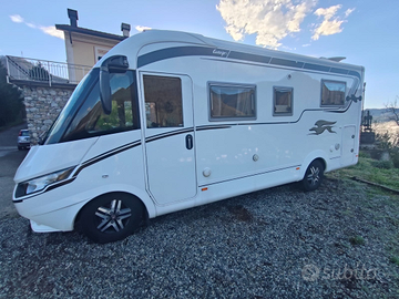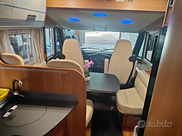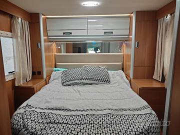 Doppio pavimento antenna satellitare puntamento automatico con pannello touch screen Truma combi 6 più riscaldatore supplementare con scambiatore di calore frigo dometic con freezer separato letto nautico regolabile elettronicamente in altezza con ampio gavone sotto letto basculante antifurto volumetrico e perimetrale pannello solare oscuranti e zanzariere su finestre e oblò illuminazione a LED portamoto tendalino Fiamma 65L interni ecopelle doccia separata con oblò supplementare anche in bagno cappa aspirante
