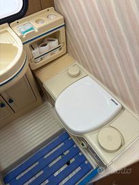 WC a cassetta estraibile molto comodo, non si deve spostare il camper per svuotarlo.