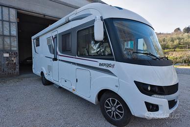 Motorhome marca Rapidó modello 8096DF con telaio ALKO su meccanica Fiat Ducato 150cv cambio manuale (no adblue) unico proprietario, 4 posti viaggianti, sempre rimessato e tenuto maniacalmente, anno 2019, con antenna satellitare , 1 televisore, 1 pannello solare, inverter e modulo batteria al litio da 200Ah con impianto elettrico dedicato, ammortizzatori ant. aria/olio, 2 oblò Turbovent camera e basculante, letto nautico motorizzato, cucina con cappa aspirante, tenda da sole con illuminazione a led, oscurante termico esterno più oscurante per rimessaggio, oscuranti esterni per finestre e oblò, antifurto, retrocamera, garage allestito con pianale in alluminio e slitta per caricare la moto, no permute euro 82.000 trattabili. 3357611652