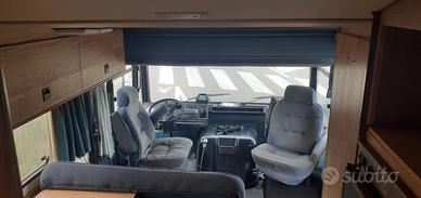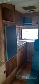 trasformabile in letto matrimonialesalotto anteriore ruotando i sedili della cabina guida e ribaltando la seduta della dinette centralecucina ad angolo in coda:fornellilavandinofrigorifero trivalente