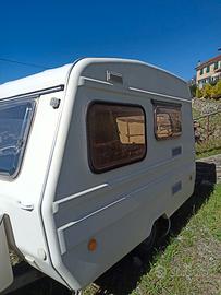 Vendo roulotte da personalizzare esternamente già a posto verniciato gavone anteriore e paraurti cambiate tutte le griglie luci anteriori guarnizioni profili maniglie ecc. nessuna infiltrazione dentro già svuotata per cambio tappezzeria ma ci sono tutti i mobili un pò da revisionare ,zanzariere,cuscini,tende,già tutto lavato,frigo ,lavandino, per motivi di salute non riesco piùa finirla,ho altre foto esterne e interne