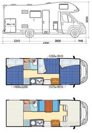 Noleggio camper 6 posti viaggio e 6 posti letto , bagno con doccia separata, riscaldamento a Gasolio, maxi garage in coda