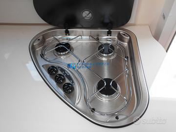 Cucina con piano cottura 3 fuochi, lavello in acciaio INOX e cappa aspirante