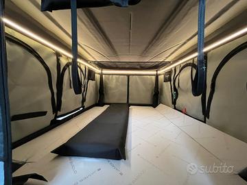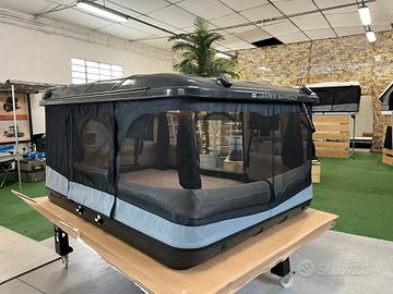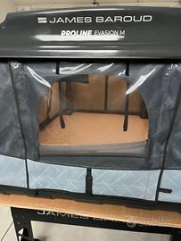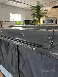 Nuova Evasion ProLine James Baroud !!! Nuovo tessuto 3 volte piu' spesso del normale Fonoassorbente + 50% rispetto al precedente oscuramento del 99% una volta chiusa doppia chiusura delle porte col velcro e cerniere full view 360° Illuminazione a led Interni ventola per ricircolo dell'aria ricaricabile con pannello solare nuovo materasso Rete portaoggetti Costruzione in vetroresina rinforzata Predisposizione per il montaggio di barre portatutto sul tetto chiusure con attuatori e blocchi manuali di sicurezza chiusure esterne in metallo con doppia sicura Colorazione Charcoal Pronta consegna con PROMOZIONE MESE DI APRILE Tasso 0000 sulle unità disponibili sede Trailer Point // //