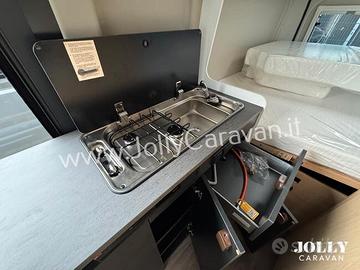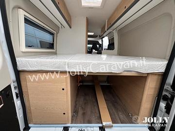 Gli interni sono studiati per massimizzare spazio e funzionalità, con letto posteriore ampio, dinette trasformabile e numerose soluzioni di stivaggio. La presenza del tendalino, degli oscuranti plissettati e della predisposizione TV e retrocamera completa un van pronto a partire.
