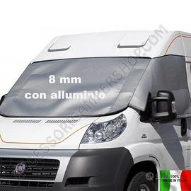 Oscurante termico esterno per coprire il vetro della cabina del cabina del camper, van o furgonato in PVC e alluminio accoppiato, ad elevato potere isolante dal caldo estivo e dal freddo invernale.