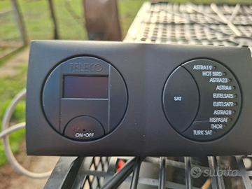 Parabola satellitare automatica Marca Teleco Perfettamente funzionante Doppio occhio per 2 tv Possibilità di prova La piastra di fissaggio è rimasta incollata sul tetto del camper.