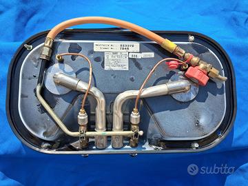 Vendo questo piano cottura a incasso per van o camper a gas BUTANO. Il piano è di produzione tedesca marca Cramer - Westfalia, funzionante. I sensori a termocoppia funzionano regolarmente e interrompono il flusso del gas allo speginmento della fiamma. L'accensione è esterna, ma in compenso l'impianto non richiede collegamenti elettrici. Vendo con tubo di collegamento e valvola di chiusura di sicurezza. In un altro mio annuncio ho messo in vendita la bombola per Butano relativa.