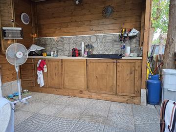 Vendo piazzola 248 all'interno del Camping Onda a Tor San Lorenzo. Casetta in legno realizzata due anni fa, 6 posti letto. Roulotte con letto matrimoniale e due letti singoli a castello. Due ampi armadi nella roulotte; tutti i materassi sono ortopedici su misura. Tutte le finestre della roulotte sono apribili per un'ottima circolazione dell'aria. Casetta in legno con ampie finestre con persiane e zanzariere. Divano letto, Climatizzatore, cassettiera, dispensa e mobiletto per riporre qualsiasi oggetto. Pavimento della casetta in SPC effetto legno, ultra resistente a urti e umidità, non si deforma. Frigorifero stile americano Whirlpool. Ampio bagno con tutti i sanitari nuovi, sanitrit esterno, box doccia idromassaggio con radio, cromoterapia, luce interna, display touch, idromassaggio plantare, sauna, bagno turco. Ampia cucina esterna con lavandino due vasche e piano cottura 5 fuochi in fragranite Franke. Lavastoviglie hotpoint Ariston. Completa di tavolo con sedie. Staccionata in legno con cancelletto. Tutta la struttura è stata realizzata per durare nel tempo e secondo le regole del campeggio.