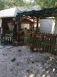 vendesi piazzola attrezzata vista lago, situata in campeggio lago Trasimeno, tranquillo a conduzione familiare, adattissimo a famiglie con bambini, ombreggiato, con piscina , con struttura di copertura in legno con telo in PVC, cucinotto esterno attrezzato con frigo cucina ecc.. completa di teli laterali pavimentazione con piastrelle plastica e graniglia, evenuale e facoltativa vendita roulotte con veranda