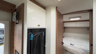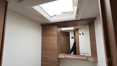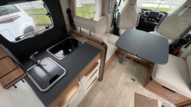 Cerchi in lega 16? Volante in pelle Bocchette aria grigio alluminio Sensore di pressione dei pneumatici Freno di stazionamento elettrico Accensione automatica dei fari 1 batteria AGM 1 pannello solare Autoradio 7? Pioneer DAB AppleCar / Android Auto Telecamera di retromarcia Altoparlanti cabina e cellula Serbatoio acque grigie antigelo Illuminazione, barre e presa 230 V nel gavone Doccetta acqua fredda / calda nel gavone Veranda Pedana Bandella estraibile Regolatore invertitore/automatico - Crash Sensor Trauma