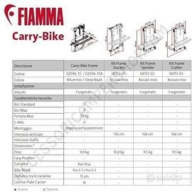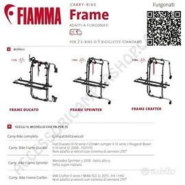 Nuova gestione per i Carry-Bike della serie Frame: Ducato, Sprinter e Crafter, un solo portabici e 3 diversi frame dedicati per ogni tipologia di veicolo, acquistabili separatamente. Versione Deep Black.