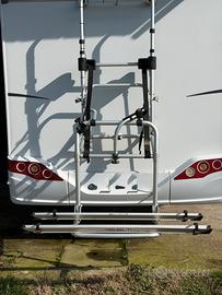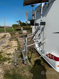 Porta bici Lift 77 della Fiamma in perfette condizioni. Molto comodo perché si abbassa e rialza con manovella senza bisogno di alzare le bici. Porta 2 biciclette, prezzo trattabile se veramente interessati