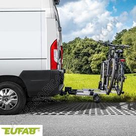 Novità 2024! Porta-biciclette SD 260 EUFAB per gancio di traino, adatto anche per per veicoli con porte posteriori come furgonati o van.
