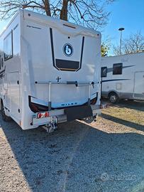Porta moto camper, in acciaio e alluminio, smontabile con pedana di risalita e piano di appoggio ciclomotori, motocicli e bici. Portata max 150kg