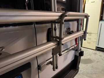 Presenta qualche imperfezione non adatto a e bike mi pare una portata massima di 30 kg in totale 15 per Bicicletta il prezzo di 300 € se vi interessa ha lasciato il numero di telefono. L'orario vi richiamo no perditempo grazie
