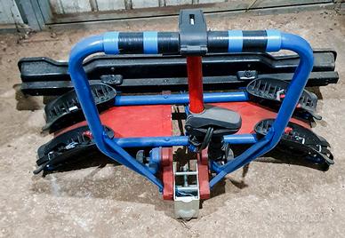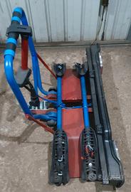 portabici per due posti con impianto luci, con attacco per gancio di traino; usato solo una volta cedo per vendita auto.
