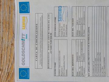 Disponibile portamoto marca goldsmith con libretto certificato omologato comunità Europea. La portata di questo portamoto è di 120 kg. Viene venduto completo di zanche da ancorare a piattaforma Ducato, Peugeot, Citroen x250/290 ( dal 2006 ad ora ).
