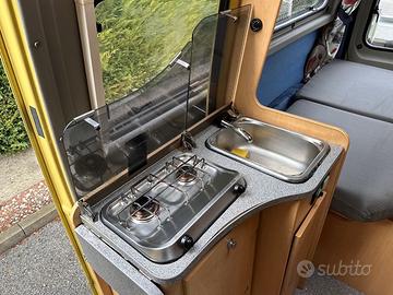Gli interni sono funzionali e accoglienti. A bordo troverete un frigorifero, una pratica cucina, un bagno con doccia e WC e un riscaldamento che garantisce comfort anche a temperature più fredde. Il camper è omologato per quattro persone,