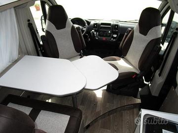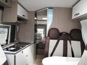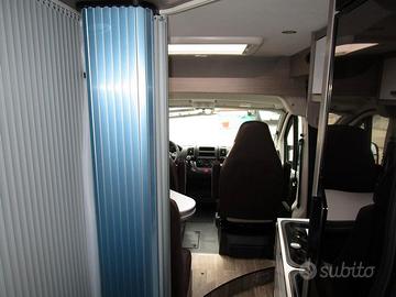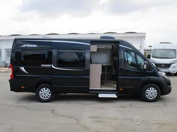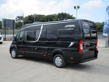 Poessl Road Cruiser - Disponibile, nuovo da immatricolare! Veicolo molto comodo e pratico su meccanica Citroen Jumper 2.2 HDI 165cv Euro 6 con sistema Start & Stop.Lunghezza 6,36 m furgonato compatto con letti gemelli trasformabile in maxi matrimoniale, riscaldamento a gasolio e frigorifero a compressore.-- Possibilità di installare un tetto a soffietto con ulteriori 2 posti letto! --Accessoriato con:Pacco All In Citroen (ABS, ASR, ESP, aria condizionata motore, airbag guida e passeggero, vetri e specchi elettrici, serbatoio gasolio da 90 lt, sensore pressione pneumatici, regolatore di velocità cruise control, oscuranti plissé in cabina, sensore luci e pioggia, fendinebbia, luci diurne a LED, predisposizione autoradio con antenna DAB e casse, bocchette dell'aria color alluminio, volante e leva cambio in pelle con comandi radio, cruscotto con anelli cromati)Telaio 35 quintali HeavyVernice pastello speciale Grigio Thunder (foto del Grigio Graphite metallizzato)Cerchi in lega da 16" con pneumatici 4 stagioni M+SSospensioni posteriori rinforzate con doppia balestraSistema di trazione Traction+ con Hill Descent ControlFrigorifero a compressore da 90 lt in testa della cucina con sportello a doppia aperturaGradino elettricoPorta scorrevole con chiusura assistita Soft-LockZanzariera porta scorrevoleMobilio con allestimento EleganceBagno con sistema "R" che permette di creare una comoda doccia nella zona del corridoioTavolo allargabile con kit 3° letto4 finestre intorno lettoFinestra in bagnoCondizionatore automaticoSpecchi esterni chiudibili elettricamenteSerbatoio di recupero coibentatoRiscaldamento a gasolio Truma Combi 6 DieselComando digitale Truma CP Plus.