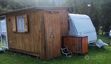 Dimensioni: 3.5 x 2 metri Quattro pareti Dotato di: - tavolo 4 posti i cui sedili sono cassapanche e che si trasforma in letto matrimoniale - impianto elettrico con luci, prese, interruttori e salvavita - stufa a gas - due mobiletti contenitori oggetti In ottime condizioni. Visitabile da fine giugno 2026. Da ritirare in zona TEMU’ - Valcamonica Se interessati contattatemi in privato.
