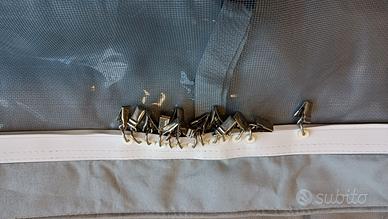 PRIVACY ROOM PER TENDALINO marca FIAMMA mod. PRIVACY 2000 composta da due pannelli laterali ed un pannello frontale che si collegano tra loro e si fissano al tendalino, completa del set di pali. misure: - larghezza mt. 3,15 (adatta per tendalini Fiamma ed Omnistore da mt. 3,00) - altezza mt. 2,30 (adatta per 2,50 al max 2,80) - profondità mt. 2,00 USATA SOLO UNA VOLTA E RIPOSTA vendo causa inutilizzo. Possibilità di visionarla, vendita formula visto e piaciuto, preferisco non spedire eventuale spedizione da computarsi a parte.